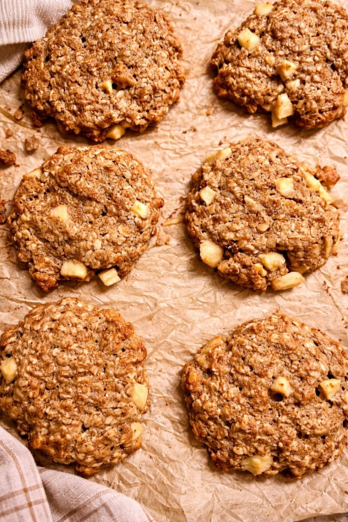 Whether you enjoy them as a cozy fall dessert, an after-school snack, or even a grab-and-go breakfast, these Oatmeal Apple Cookies are the kind of recipe you’ll find yourself baking again and again. They’re especially great for using up a couple of apples that might be past their prime or those extra Granny Smiths from apple picking.
