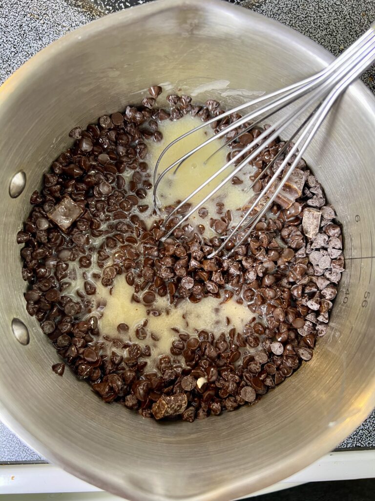 - Melt the Butter & Chocolate – In a saucepan over low heat, melt the butter and chopped bittersweet chocolate, stirring until smooth. Remove from heat and let cool slightly.
