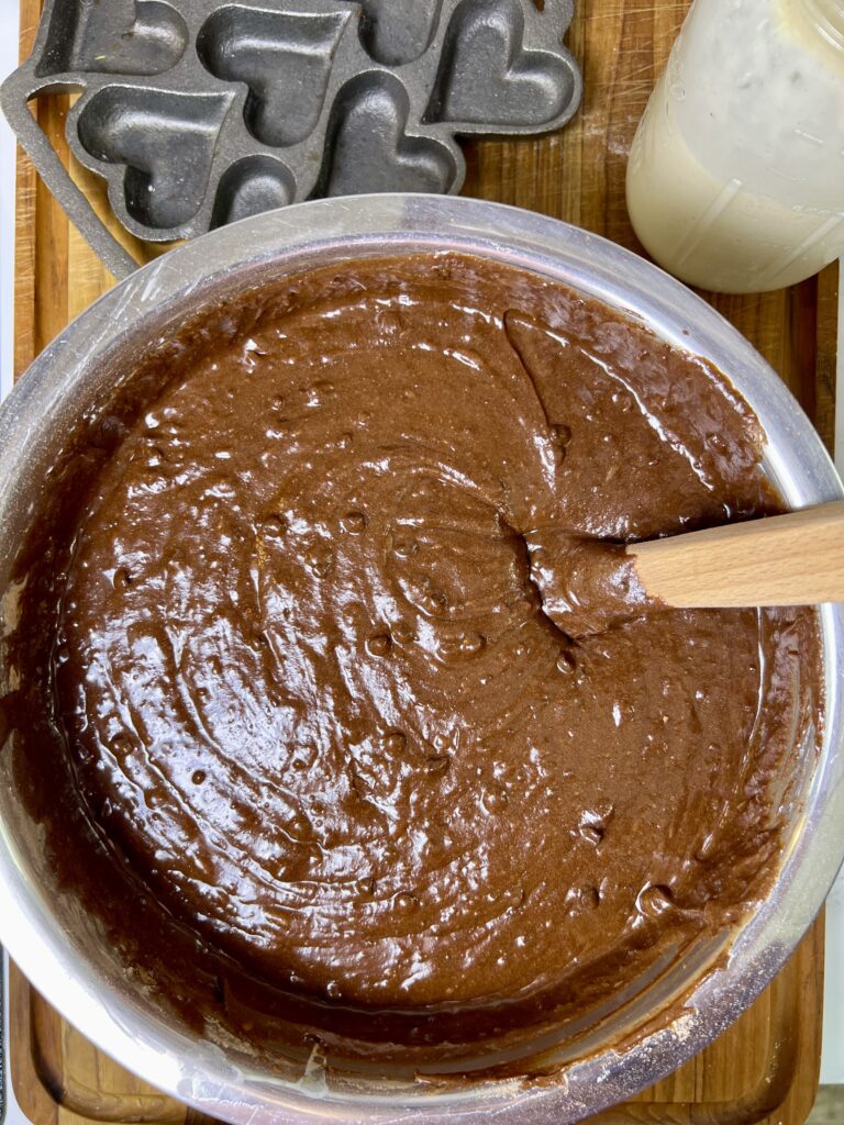 - Ferment (Optional) – If using active sourdough starter, cover the batter and let it ferment at room temperature for 4-12 hours for deeper flavor. If using discard, bake immediately.