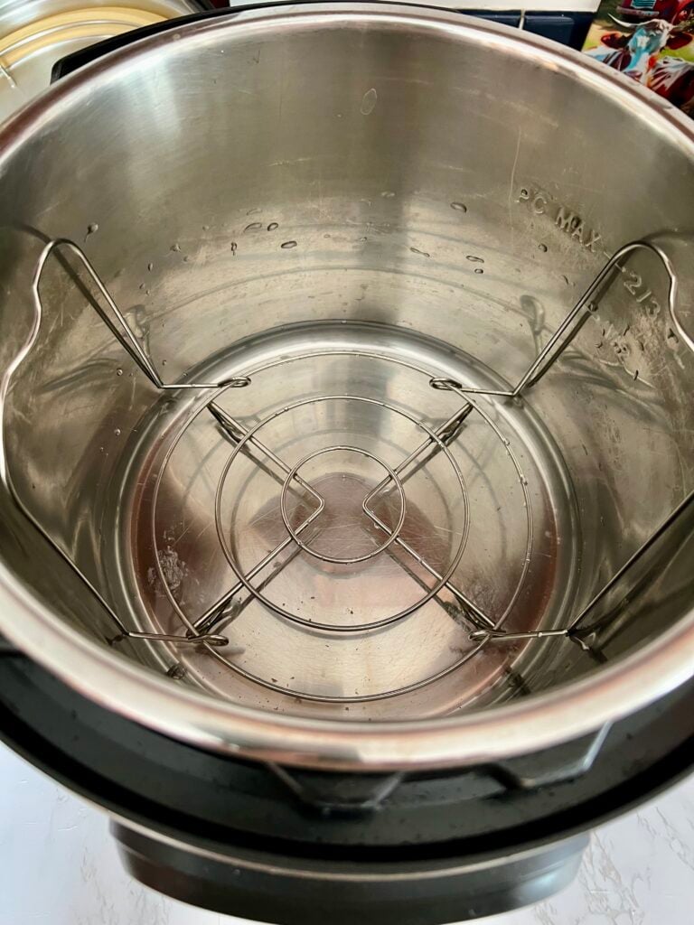 - Pour 1 cup of water (or broth) into the Instant Pot and place the trivet inside. Arrange the wings on top of the trivet.