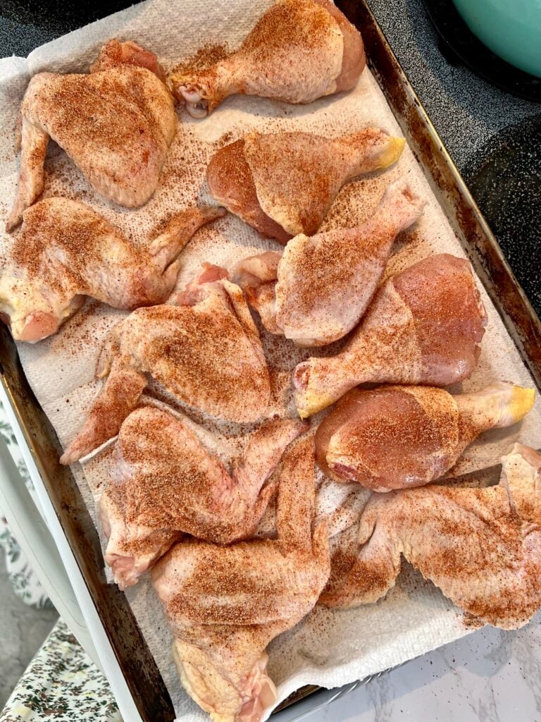 Pat your fresh chicken wings dry using a paper towel. This step is key for getting that crispy skin later.