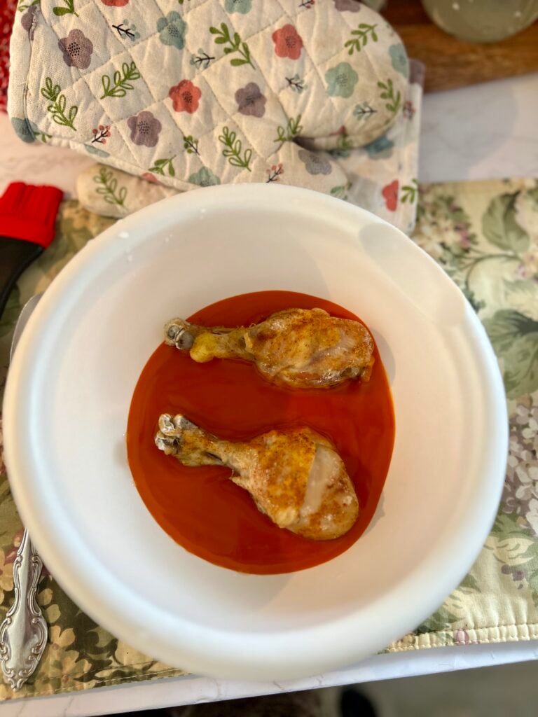 - Next, coat the wings in your favorite sauce, I chose buffalo.