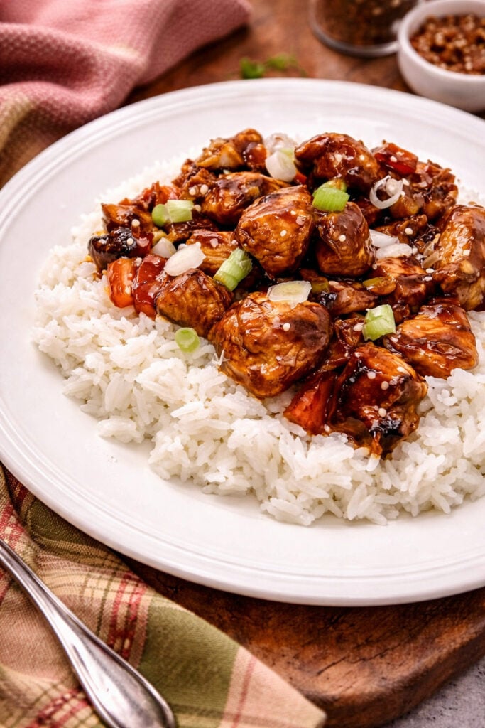 Serve hot over your fluffy jasmine rice. Garnish with a sprinkle of sesame seeds and chopped green onions for an added pop of flavor and color.