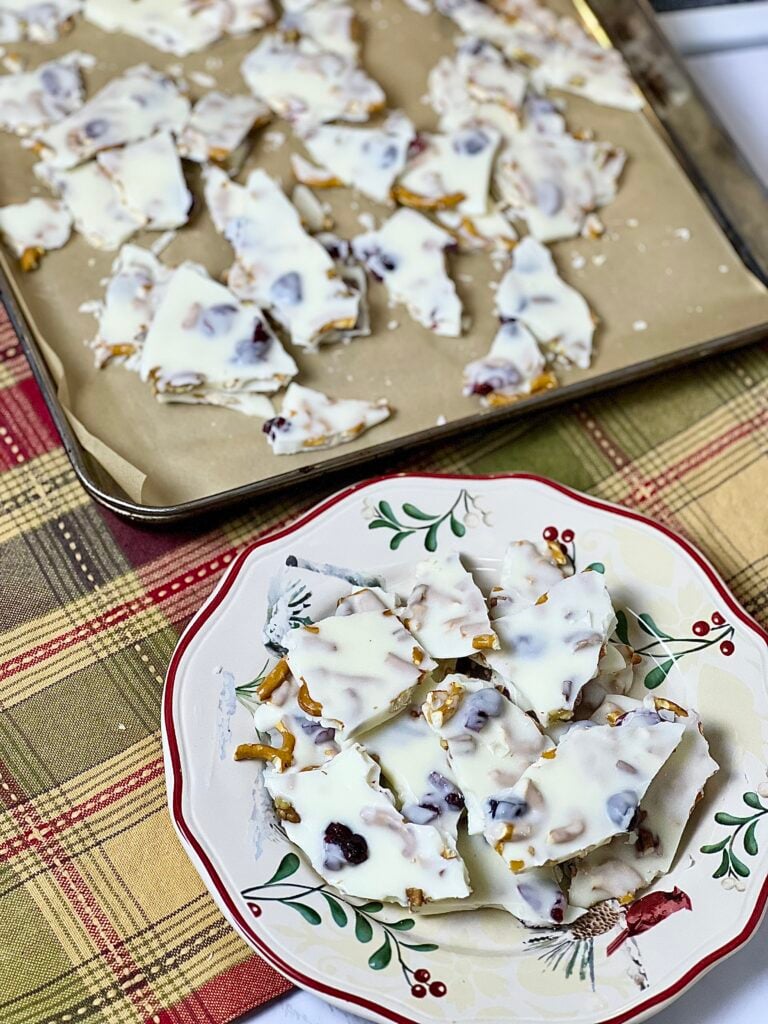 White Chocolate Pretzel Bark with Cranberries & Nuts